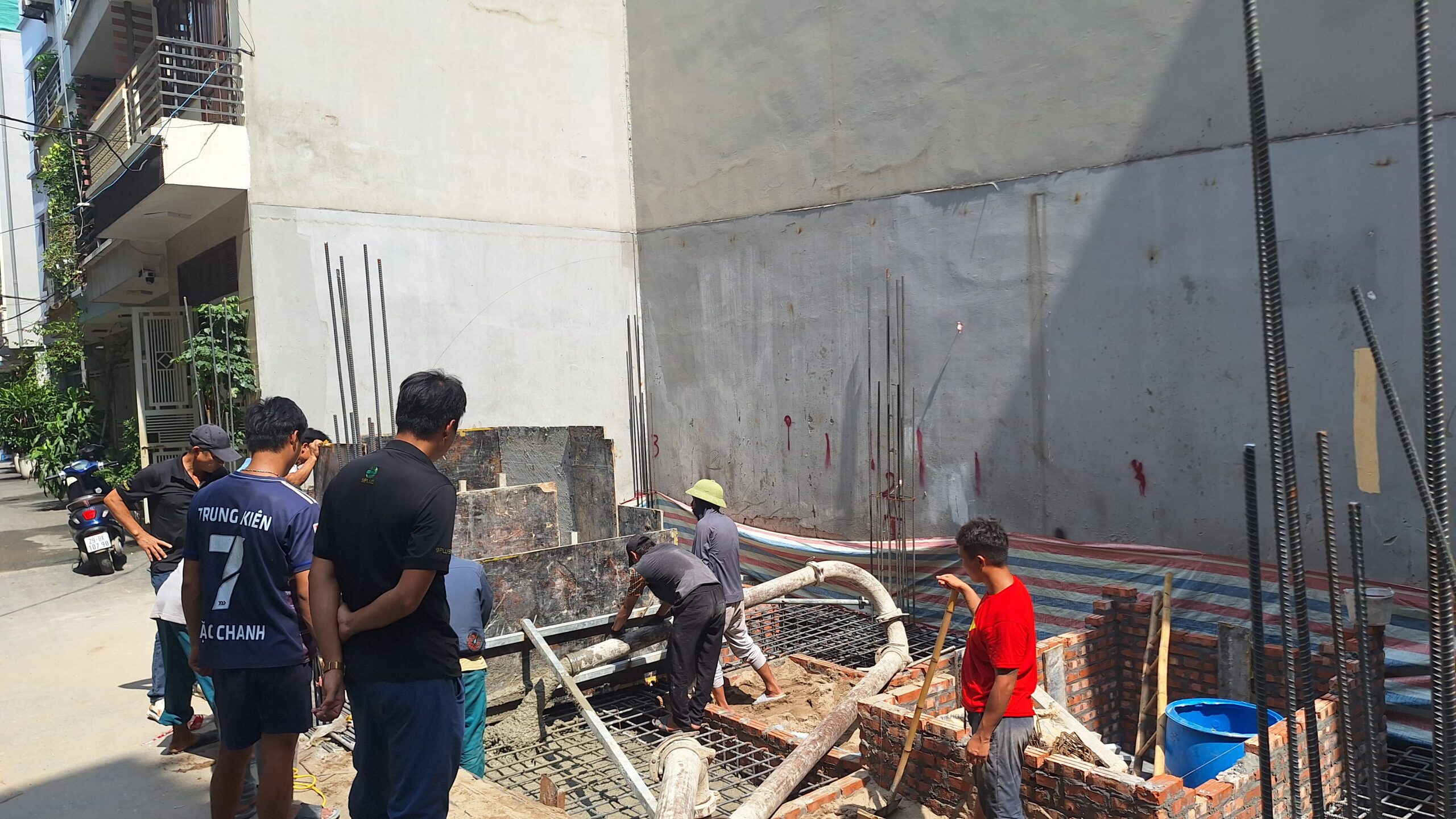 Ngôi nhà mặt tiền hẹp nhưng thiết kế tối ưu không gian theo chiều đứng. Hệ cửa kính lớn kết hợp lam gỗ và ốp đá sang trọng, giúp lấy sáng và tạo điểm nhấn thẩm mỹ. Sân thượng rộng thoáng với giàn hoa, cây xanh mang lại không gian thư giãn lý tưởng.