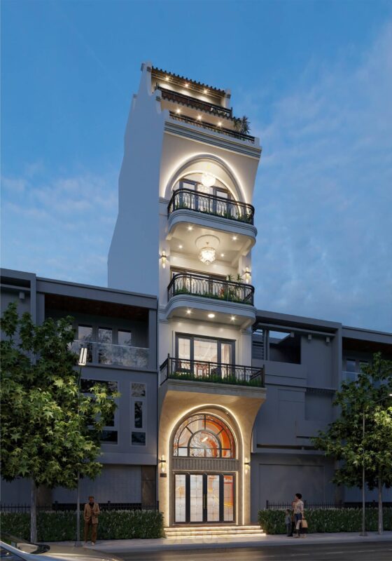 Dự án: Thiết kế và thi công nhà ở gia đình anh Đôn | Quy mô: 7 tầng | Phong cách: Tân cổ điển