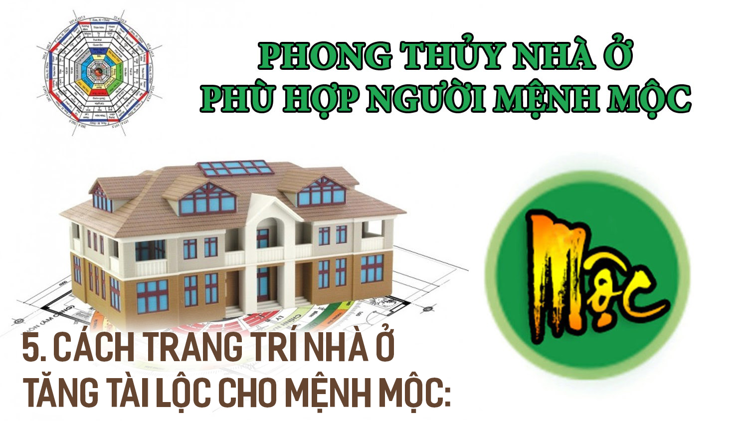 Đối với những người mệnh Mộc, trang trí nhà ở quan trọng nhất là kích hoạt được Thủy khí trong nhà. Để kích hoạt thủy khí, bạn có thể sử dụng lối đi quanh co, bàn ghế đồ vật nên có hoa văn trang trí lượn sóng. Dùng bể cá, phong thủy luân hoặc chậu thủy tinh thả hoa tươi ở phòng khách. Trong phòng ngủ nên có gương để Thủy dưỡng Mộc. Có thể ốp trần thạch cao, hoặc gỗ hình uốn lượn, hoặc hàng rào gỗ, sắt có những bông hoa bằng sắt.